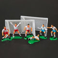 הסט כולל שני שערי פלסטיק לבנים, וקבוצה של שחקני כדורגל בתנוחות משחק מגוונות, כגון בעיטה, הגנה, שוער ועוד.
