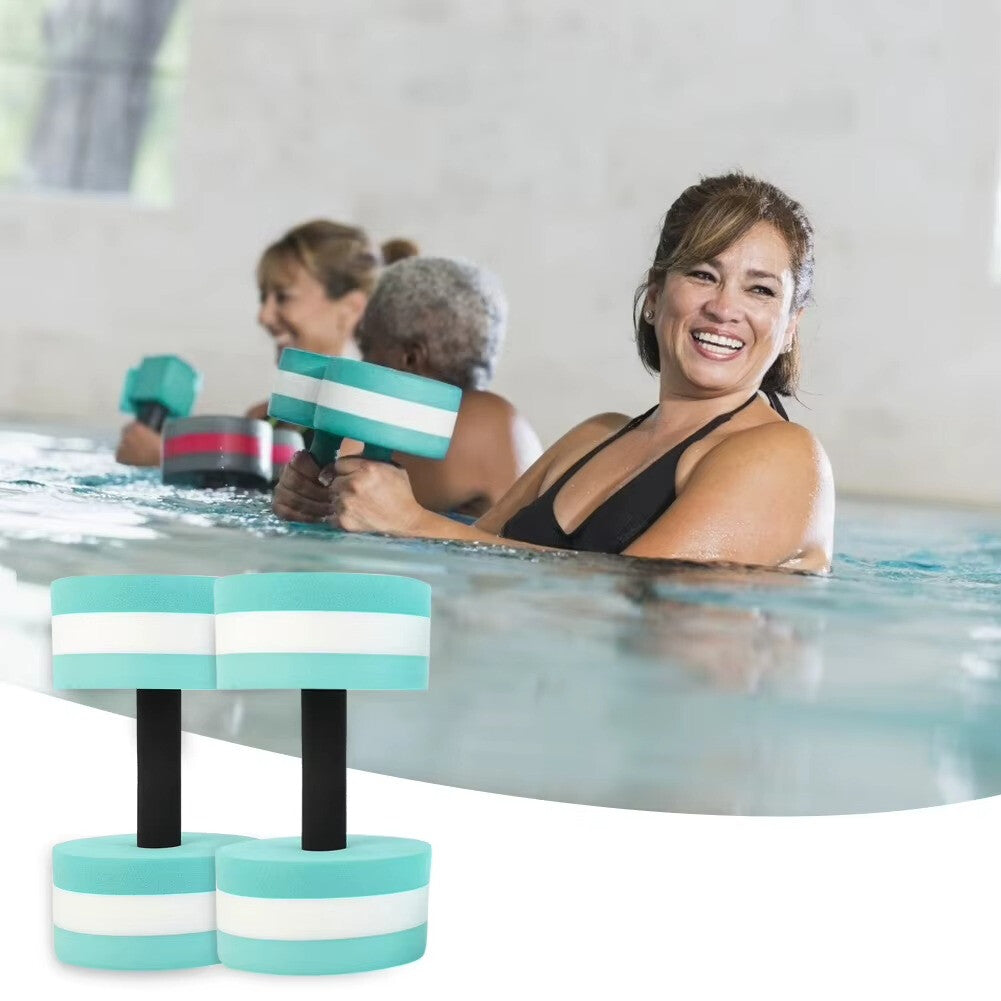 זוג משקולות לביצוע תרגילי כושר ואירובי במים, תורמות לחיזוק שרירי פלג גוף עליון כגון ידיים, כתפיים, שכמות וגב.
