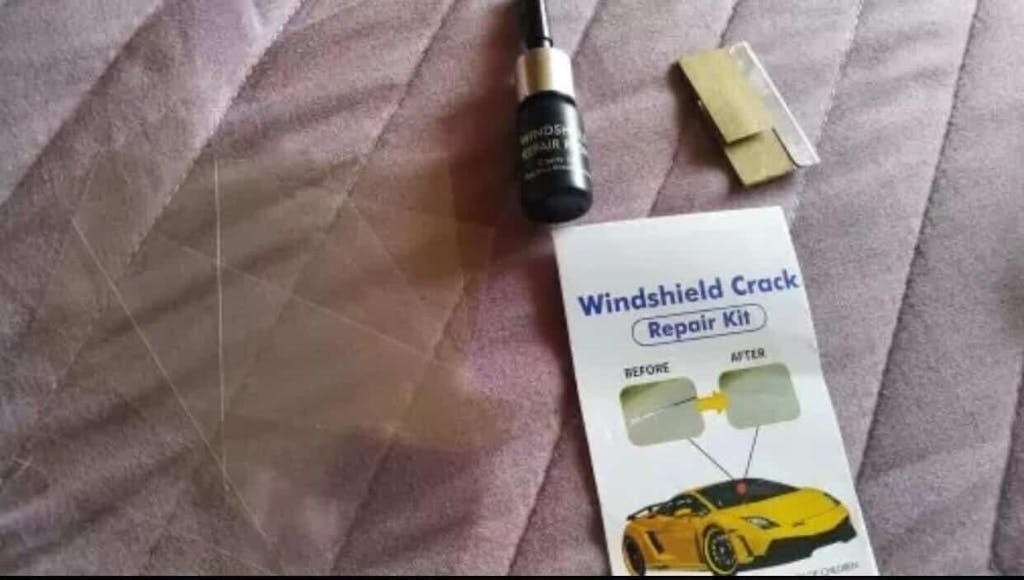 הערכה כוללת: נוזל לתיקון סדקים ושברים בזכוכית, מדבקות תיקון ולהב למריחת הנוזל.