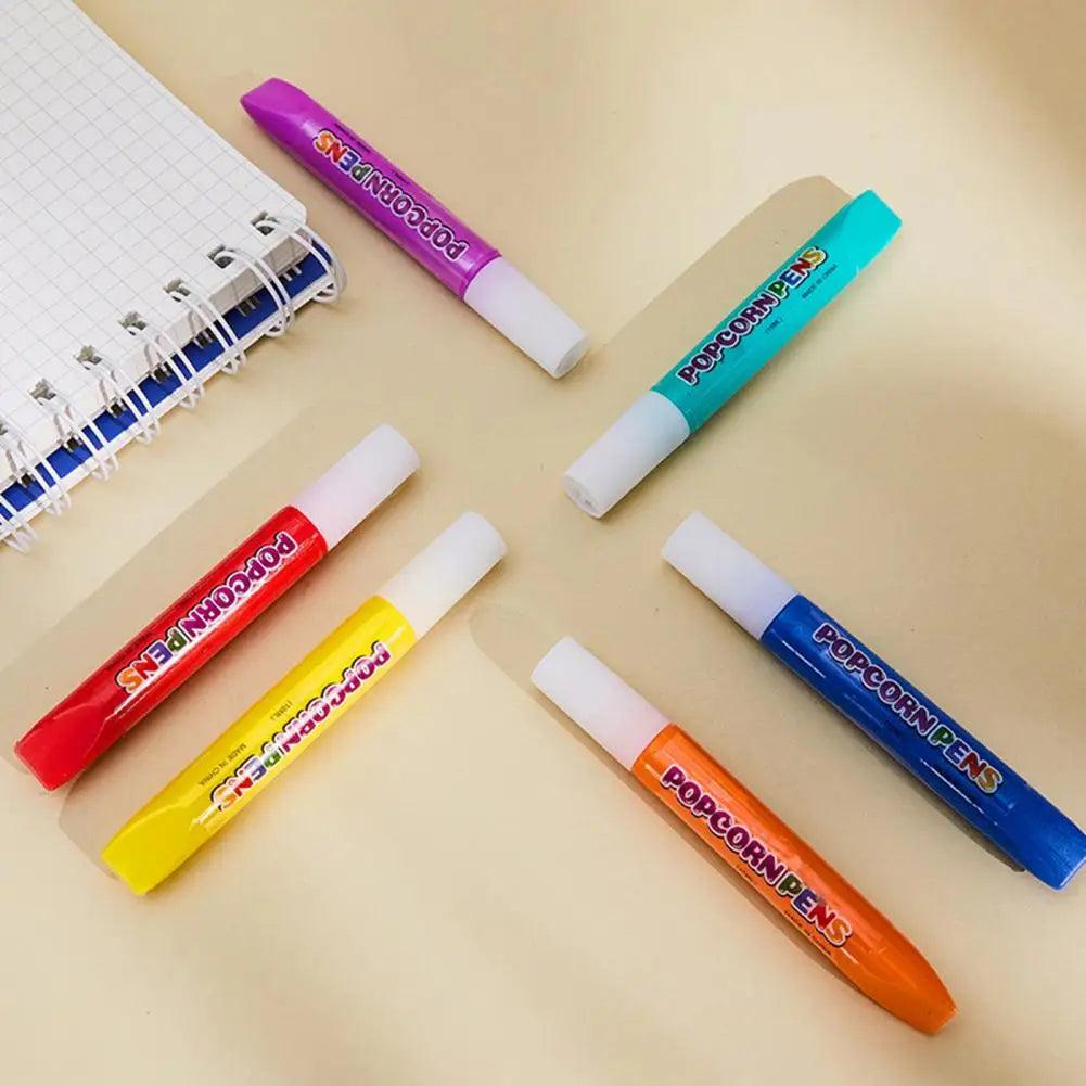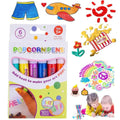 הסט כולל 6 עטי פופקורן בצבעים עשירים, המאפשרים לצייר על מגוון משטחים כמו נייר, קרטון ואפילו בד.