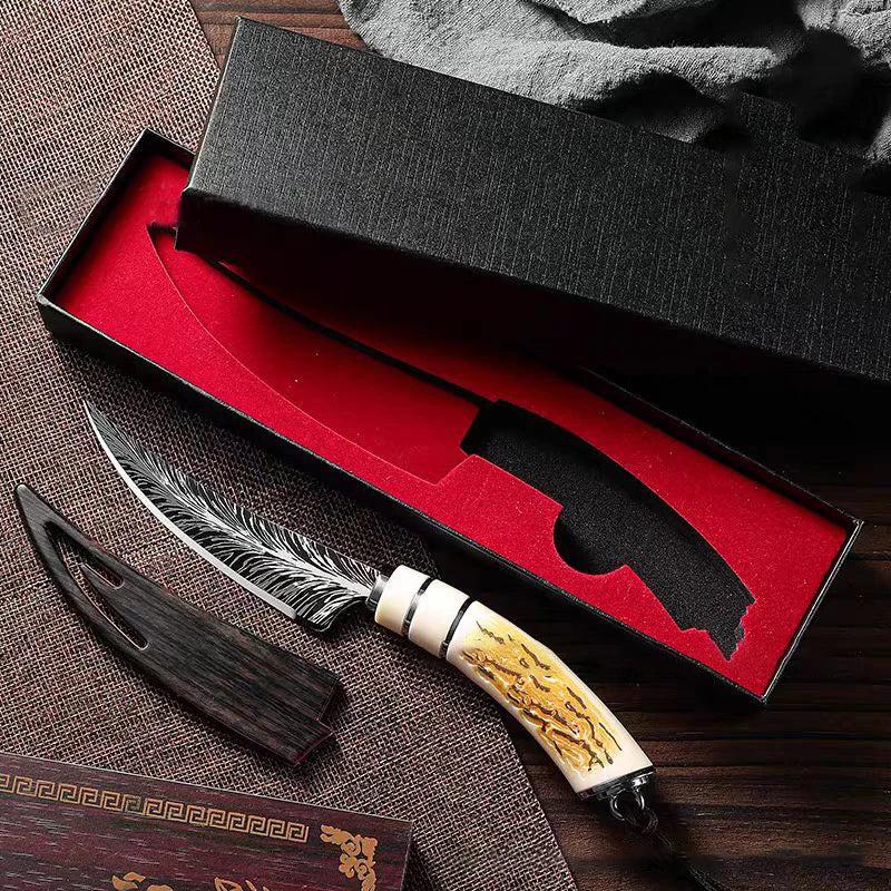 הסכין כוללת ידית אחיזה מרשימה, המעוצבת בסגנון דמוי שנהב, ומעניקה יציבות מקסימלית, מונעת החלקה בזמן העבודה, ומספקת נוחות אופטימלית לכף היד גם במהלך עבודה ממושכת.